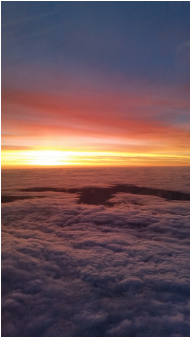 La foto está hecha desde la ventana del avión de regreso a España. Me parece fantástica y cada vez que la veo me animo. Ya que, me inspira a pensar que puedo conseguir buenas y nuevas cosas, si lo intento. ¡Lo mejor está por llegar!